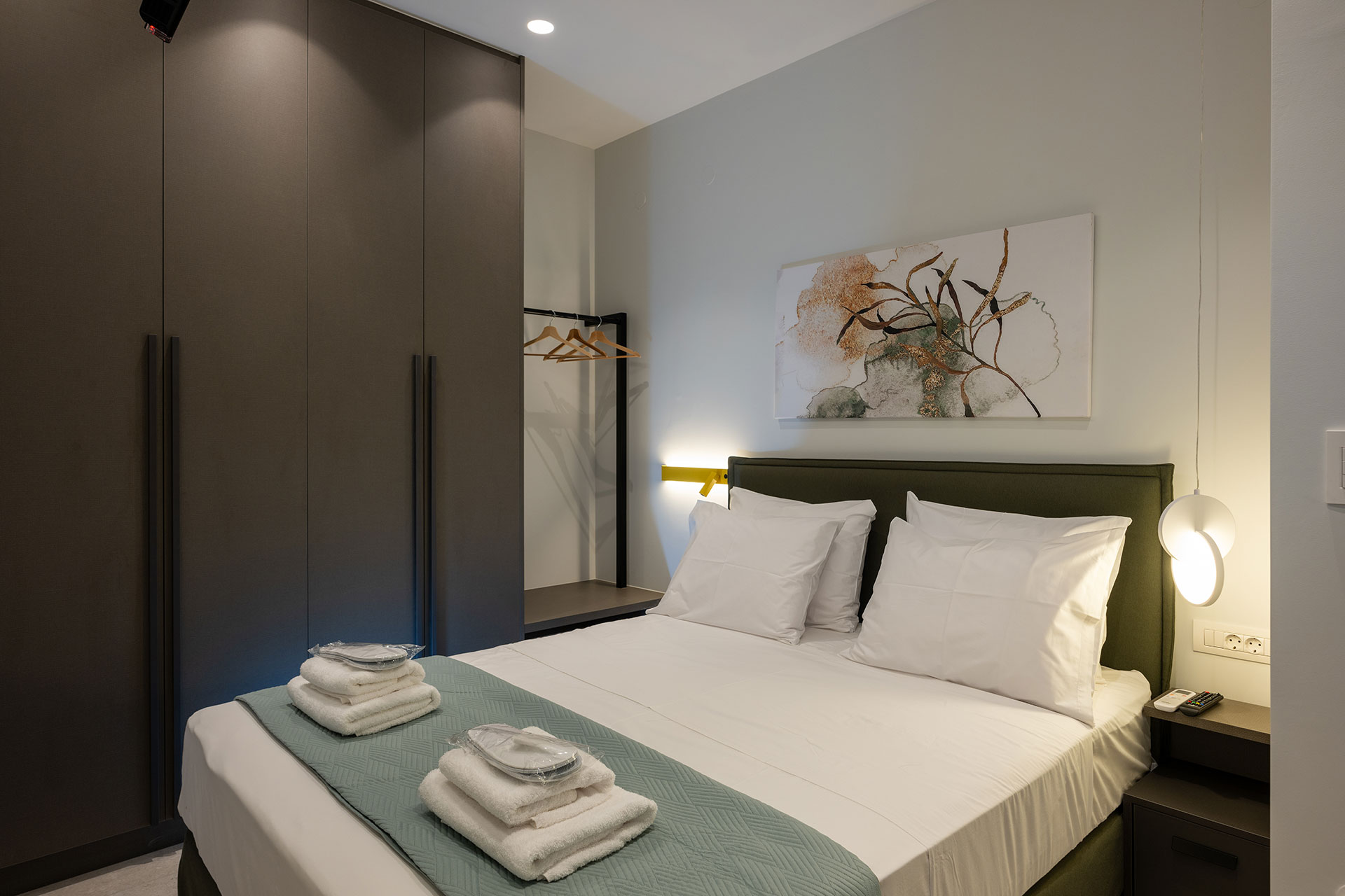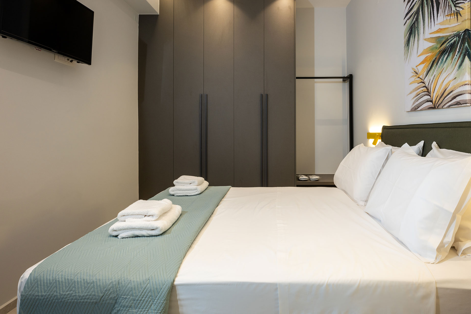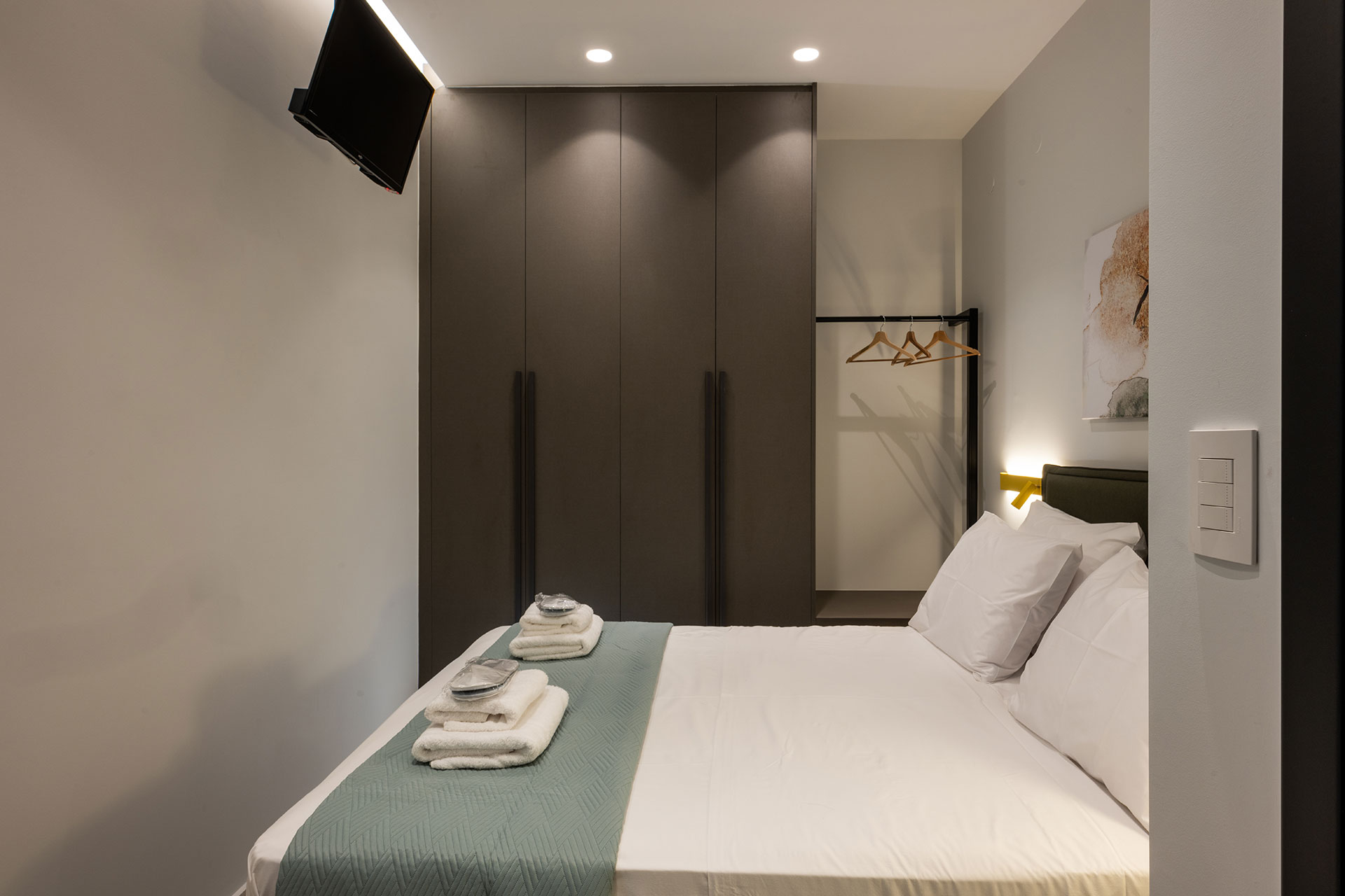 A cozy and tasteful 40m² apartment with modern decor and all the essentials for a pleasant stay. It features spacious areas, a double bed, a sofa bed, and a small outdoor space for relaxing moments.